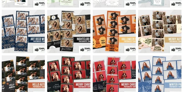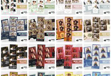 Wählen Sie aus verschiedenen Vorlagen für Ihre Fotos, inklusive Namen und Event-Infos.